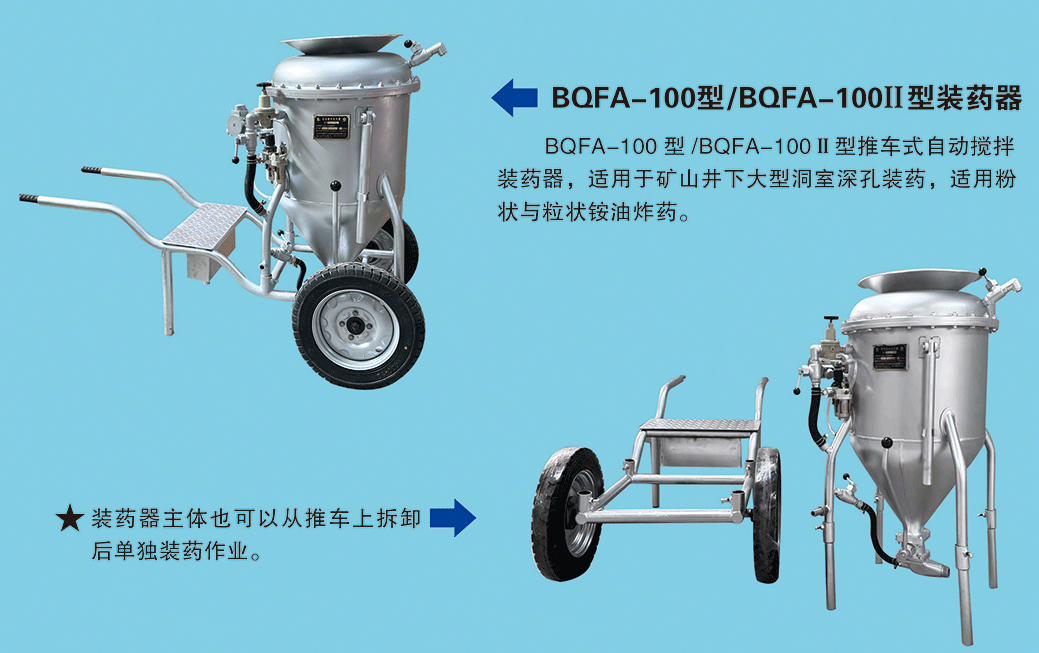 BQFA型自動攪拌系列裝藥器,我公司最新研發(fā)并已生產(chǎn)全面推廣市場,已獲得國家發(fā)明專利。手動攪拌裝藥器歷經(jīng)30余年,現(xiàn)打破傳統(tǒng)產(chǎn)品觀念,讓習(xí)慣改變,迎合市場需求,打造更安全便捷的礦用機(jī)械設(shè)備。突破創(chuàng)新,奮力實現(xiàn)自動化礦山,致力滿足各大礦山需求,在繁榮昌盛的道路上繼續(xù)前行。